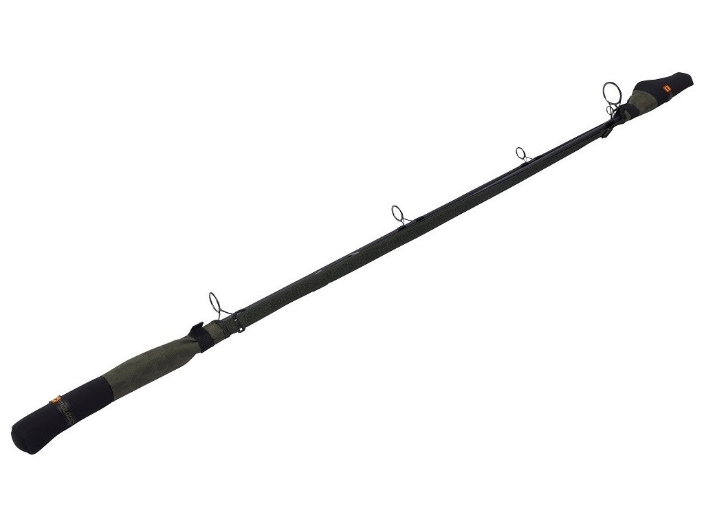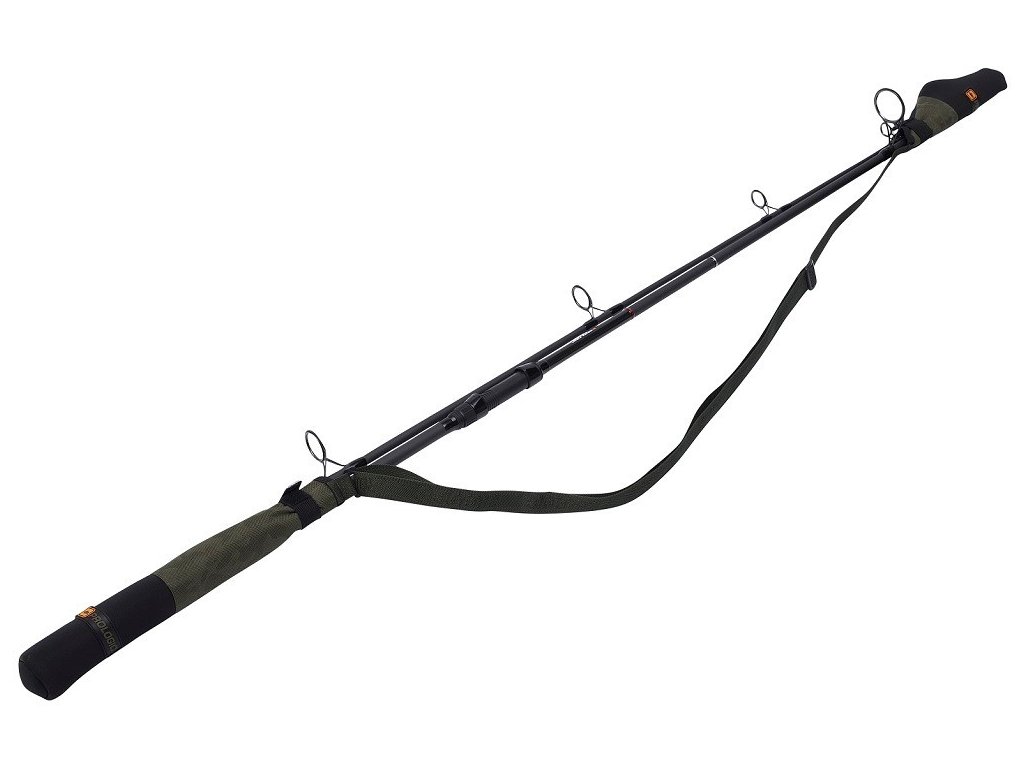 Měkké neoprenové chrániče se suchým zipem na špičku a konec prutu, které jsou dohromady spojeny nastavitelným napínacím popruhem.