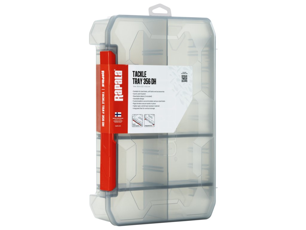 Rapala Tackle Tray je navržen pro bezpečné uložení, dokonalou organizaci a rychlý přístup k rybářskému vybavení. Robustní konstrukce v kombinaci s chytrým designem chrání nástrahy i příslušenství v těch nejnáročnějších podmínkách. Pevné, přizpůsobitelné přepážky umožňují uložit nástrahy různých velikostí, zatímco Quick Latch System zajišťuje pohodlné otevírání jednou rukou. Díky stohovatelnému provedení, integrovaným nožkám pro vertikální skladování a přepisovatelným štítkům je organizace výbavy maximálně efektivní.