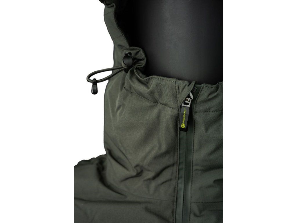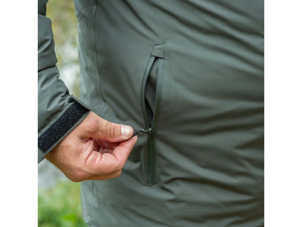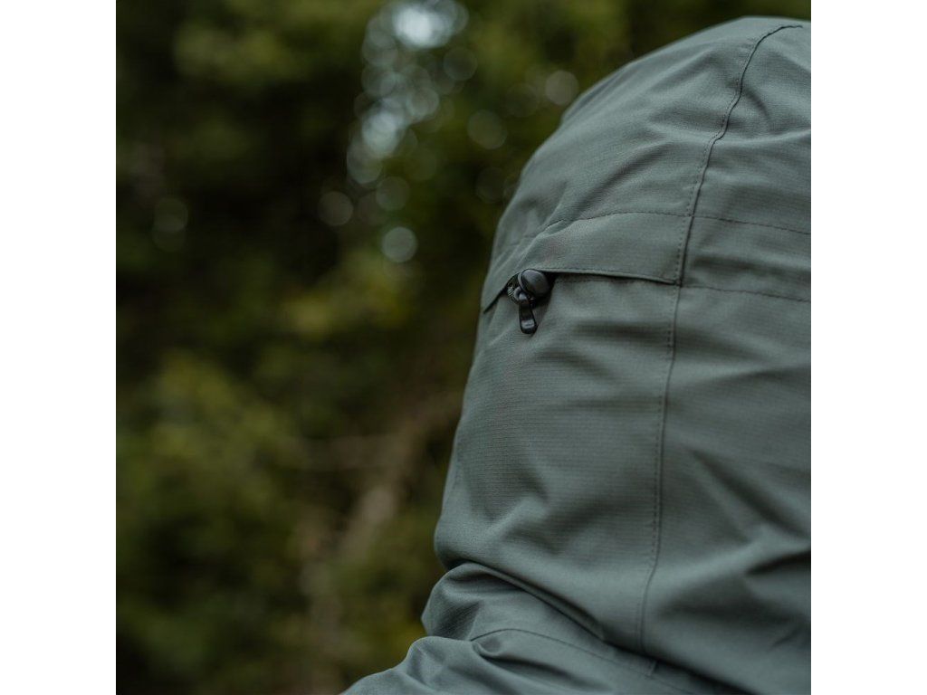 Celopropínací voděodolný zip s légou chrání před chladem a velká zateplená kapuce s 3bodovým nastavením umožňuje přizpůsobit krytí přesně podle potřeby. Odolný ripstopový materiál s nepropustnou membránou vydrží i náročné podmínky a prodloužený zadní lem odvádí vodu pryč od těla.