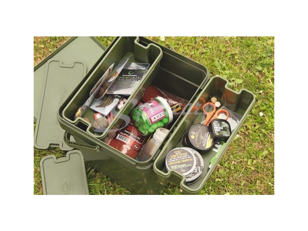 Praktická tříkomorová vložka určená pro přehledné uložení příslušenství, návnad a krmení.