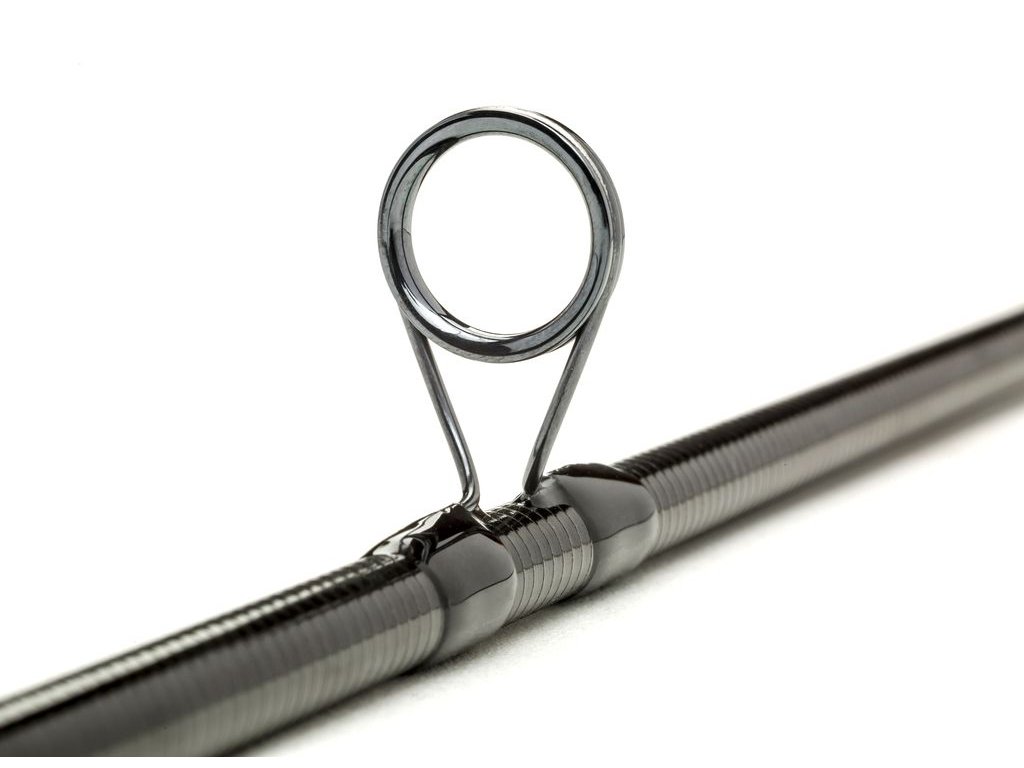 - Vodicí očka: Ceracoil stripping guides z nikl-titanu s vložkami Zirconia + Recoil snake guides – hladký průchod šňůry, nulová koroze, nízké tření.