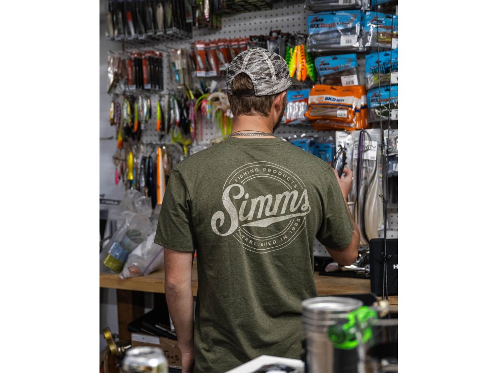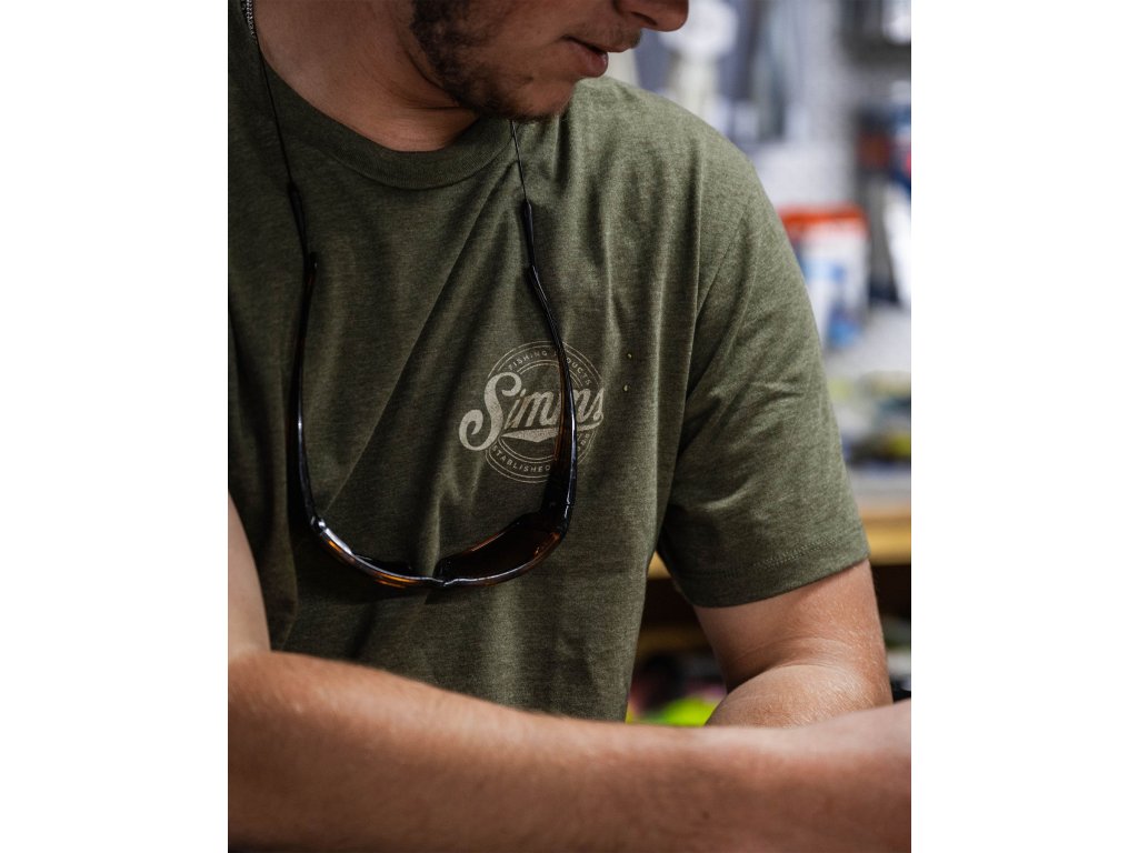 Simms Circle Lockup T-Shirt Military Heather – pohodlné tričko pro každý den v klasickém stylu Simms.