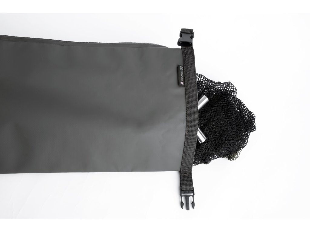 Má dostatečnou velikost, aby se do něj vešla ramena podběráku o délce až 50" (1,27m) a dokonce i na ty největší plovoucí vážící saky. Inovativní konec s odtokovými otvory umožňuje obal pověsit a snadno a rychle vysušit jeho obsah mezi jednotlivými výpravami.