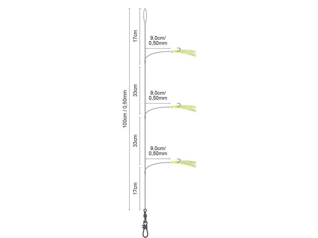 Díky praktickému klipu na spodní části návazce lze snadno měnit zátěž podle aktuálních podmínek. Ideální volba pro rybolov z lodě i ze břehu.