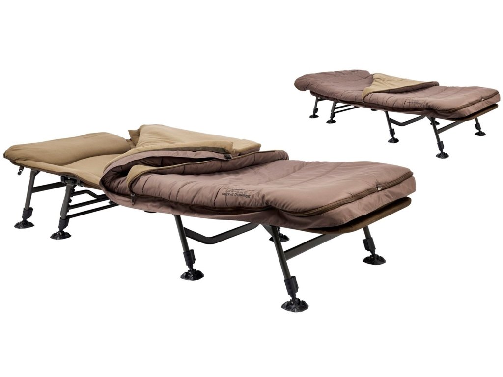 Lehké lehátko s pevnou konstrukcí vyrobenou z leteckého hliníku doplněné o spacák jako ultimátní řešení pro spánek na rybách.