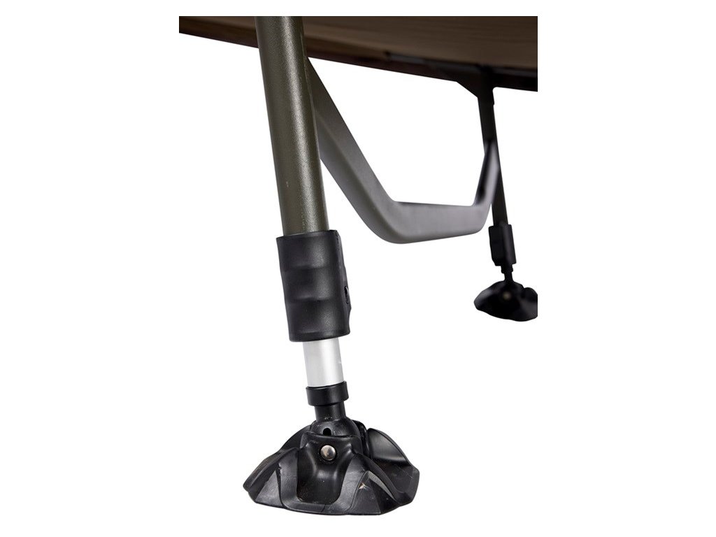 Lehátko je velice pevné a odolné, ale přitom ultra lehké! Matrace je silně polstrovaná a obsahuje termální vrstvu. Spací středová část s hřejivým fleecem na povrchu je vypolstrovaná pěnou nejvyšší kvality. Ergonomický integrovaný polštář pod hlavou. Povrchová tkanina je velice odolná. Matrace není k lehátku připevněna gumami, ale napevno. Díky tomu je spánek pohodlnější, a i při dlouhodobém užívání nedojde k proležení lehátka. Lehátko neobsahuje kloub a je tedy možné spát zcela v rovině. Výšku pod hlavou lze regulovat vysunutím nožiček. Lehátko má 8 teleskopických noh s širokými patkami proti zapadání pro jeho maximální stabilitu a komfort pro spaní.