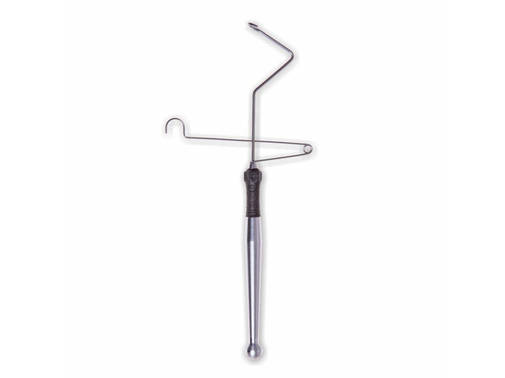 Ohebné boční rameno udržuje vázací nit při navíjení uzlu kolem háčku pod napětím a zabraňuje jeho přeskočení. Kromě toho má anatomickou měkkou rukojeť , díky které je používání velmi pohodlné.