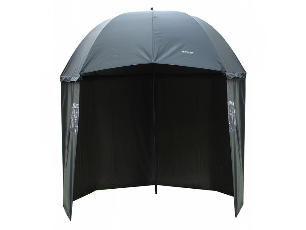 Rybářský deštník s bočnicí z 210D materiálu. Švy jsou podlepené, po obvodu vrchlíku jsou čtyři očka k ukotvení, deštník je dodáván se čtyřmi stavitelnými provazy a kolíky.