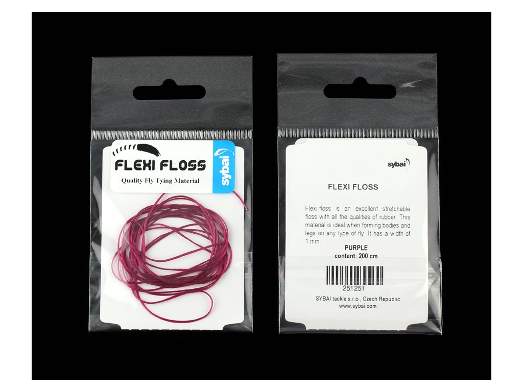 Vázací materiál na mušky Flexi Floss je plochý a extrémně elastický materiál se zajímavým leskem. Vhodný na tělíčka mušek nebo jejich kroužkování, zejména pakomárů. Flexi Floss dodá mušce charakteristické článkování a při použití laku, vznikne zajímavé tělíčko mušky.
