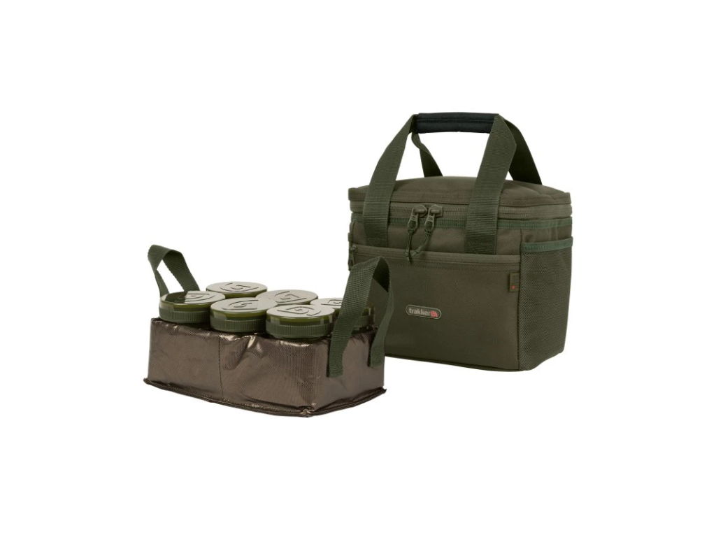 Taška je dodávána s šesti nepropustnými dózami, uloženými v izolovaném, vyjímatelném podnosu, což vám umožňuje uložit další návnady nebo vybavení v hlavní přihrádce, která je vystlaná vysokohustotní, termální podšívkou Chilla a odnímatelným PVC vnitřkem, který lze snadno vyčistit.