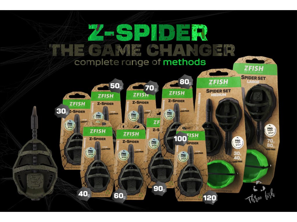 Na jejich vývoji se podílel tým zkušených specialistů značky ZFISH, díky čemuž vzniklo krmítko, které splňuje i ta nejvyšší očekávání moderního rybáře. Tvar Spidera zaručuje dokonalé vyvážení při nahazování a jisté dosednutí ke dnu vždy tou správnou stranou. Nově navržený nosný rám zajišťuje optimální uvolňování krmné směsi a zároveň chrání nástrahu během náhozu. Součástí konstrukce je speciální ploška pro přesné umístění nástrahy s háčkem, která zajistí, že vaše nástraha bude vždy v ideální pozici. Krmítka Spider umožňují rychlou výměnu zátěže díky vyjímatelné trubičce a otvoru na zadní straně. Stačí vysunout trubičku, uvolnit vlasec a vyměnit zátěž za jinou – bez nutnosti převazování celé sestavy. Krmítka jsou vyrobena z bezolovnatého materiálu v matně zeleném provedení s černými tečkami, které dokonale splyne s dnem a minimalizuje plašení ryb.