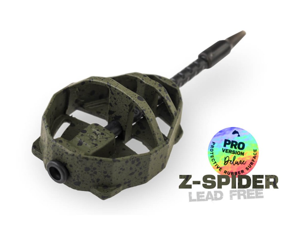 Na jejich vývoji se podílel tým zkušených specialistů značky ZFISH, díky čemuž vzniklo krmítko, které splňuje i ta nejvyšší očekávání moderního rybáře. Tvar Spidera zaručuje dokonalé vyvážení při nahazování a jisté dosednutí ke dnu vždy tou správnou stranou. Nově navržený nosný rám zajišťuje optimální uvolňování krmné směsi a zároveň chrání nástrahu během náhozu. Součástí konstrukce je speciální ploška pro přesné umístění nástrahy s háčkem, která zajistí, že vaše nástraha bude vždy v ideální pozici. Krmítka Spider umožňují rychlou výměnu zátěže díky vyjímatelné trubičce a otvoru na zadní straně. Stačí vysunout trubičku, uvolnit vlasec a vyměnit zátěž za jinou – bez nutnosti převazování celé sestavy. Krmítka jsou vyrobena z bezolovnatého materiálu v matně zeleném provedení s černými tečkami, které dokonale splyne s dnem a minimalizuje plašení ryb.