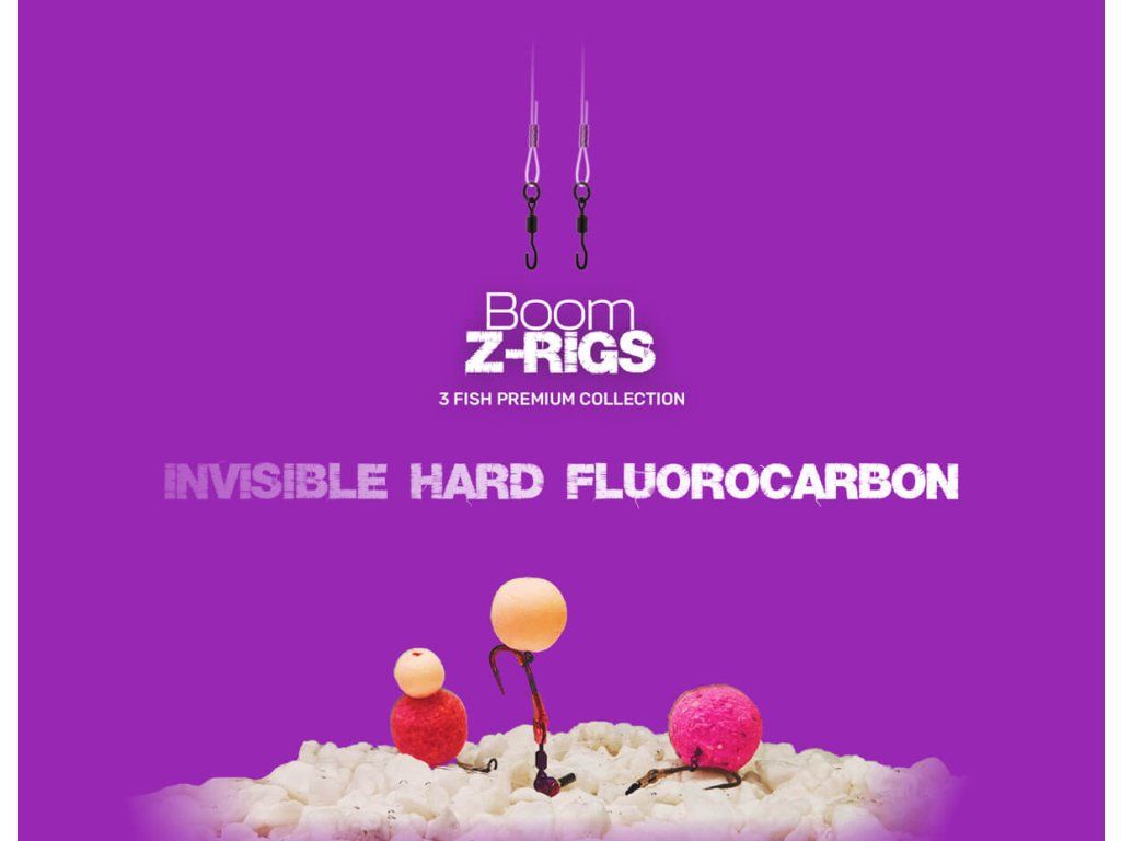 Hotový návazec zhotovený z téměř neviditelného fluorocarbonu, osazený extra ostrým háčkem s protihrotem a zakončený praktickým nástrahovým trnem.